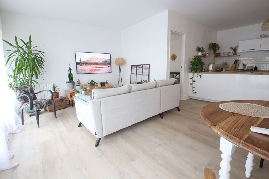 Appartement de type F3de 73 m² loi carrez, au rez de chaussée avec jardin privatif (67m²) , comprenant : entrée avec placards, séjour (SUD), cuisine ouverte entiérement équipée, wc séparés avec lave-mains, 2 chambres dont une avec dressing, salle de bains, buanderie, garage (directement accessible de l’appartement) et 1 place de parking extérieur. Parfait état général, rénové en 2021.