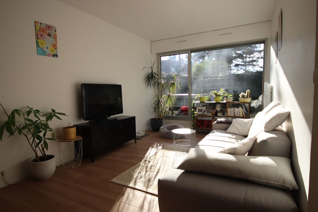 Appartement de type F2 de 50 m² loi carrez, au rez de chaussée avec jardin privatif de 60 m², comprenant : entrée avec placards, séjour (SUD), cuisine ouverte entièrement équipée, wc séparés, chambre, salle de bain, garage partiellement aménagé en dressing et buanderie (directement accessible de l’appartement) et une place de parking extérieur. Parfait état général.