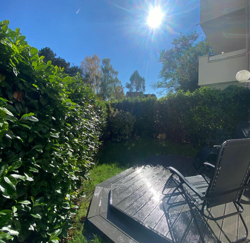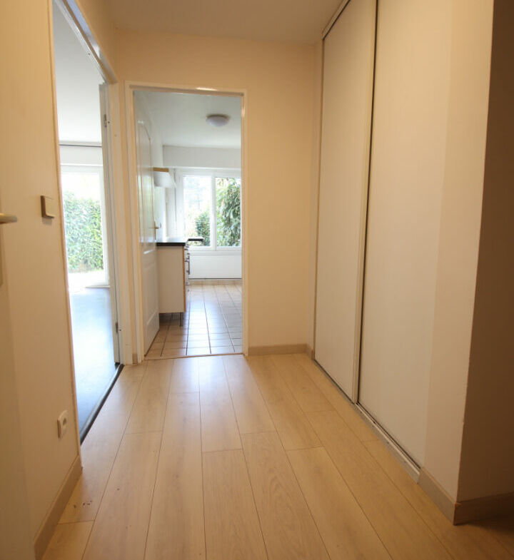 Appartement de type F3, au rez de chaussée, 63 m² habitables, 50 m² de terrasse et jardin, entrée, séjour (Est), cuisine équipée, 2 chambres, salle de bains et wc. Tres bon état général