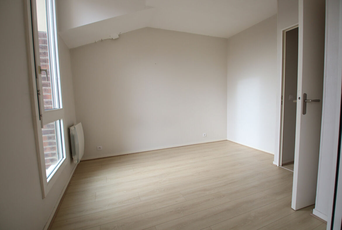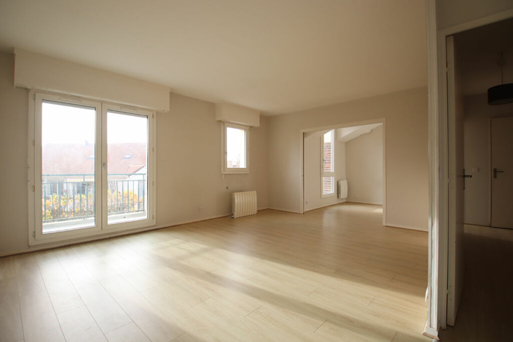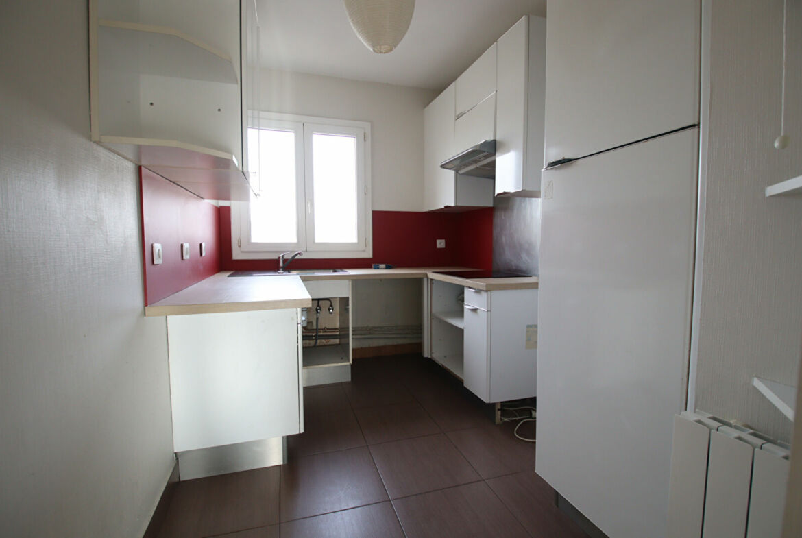 Appartement lumineux de type 4 pièces au 3eme et dernier étage d’une surface de 77 mètres carrés, divisé en entrée avec placard, séjour avec balcon (S/O), cuisine équipée partiellement, trois chambres, une salle d’eau et water-closet.