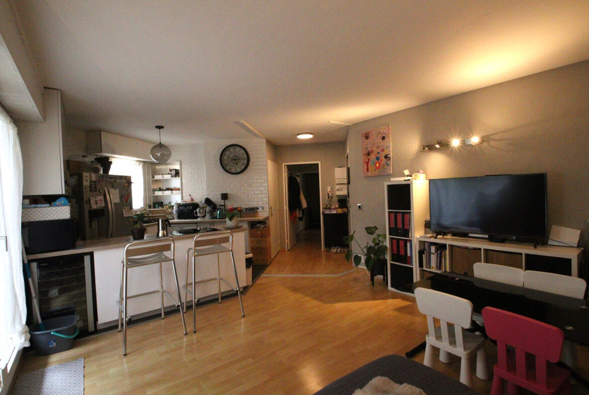 Appartement de type F3 au rez-de-chaussée, 62m² habitables,jardin terrasse d’environ 80m², cuisine ouverte et équipée, 2 chambres, rangements, salle d’eau, wc séparés. Un box fermé au sous-sol.