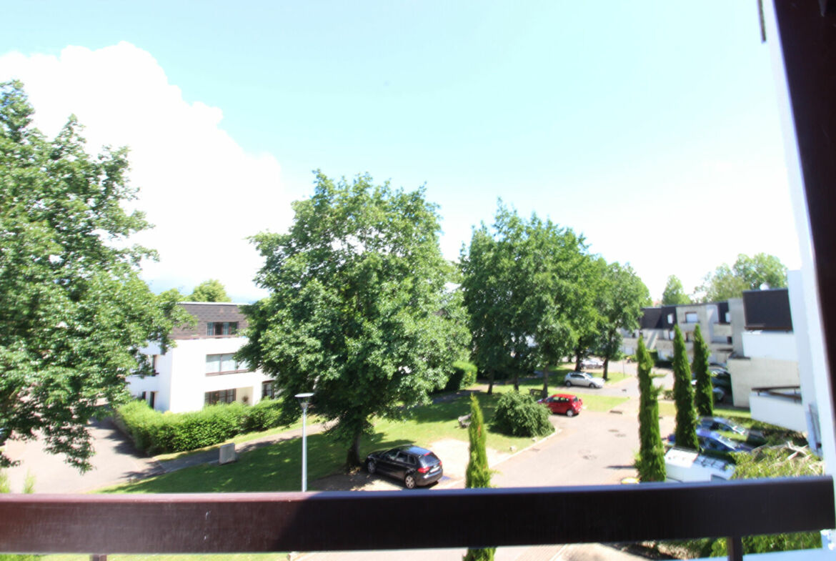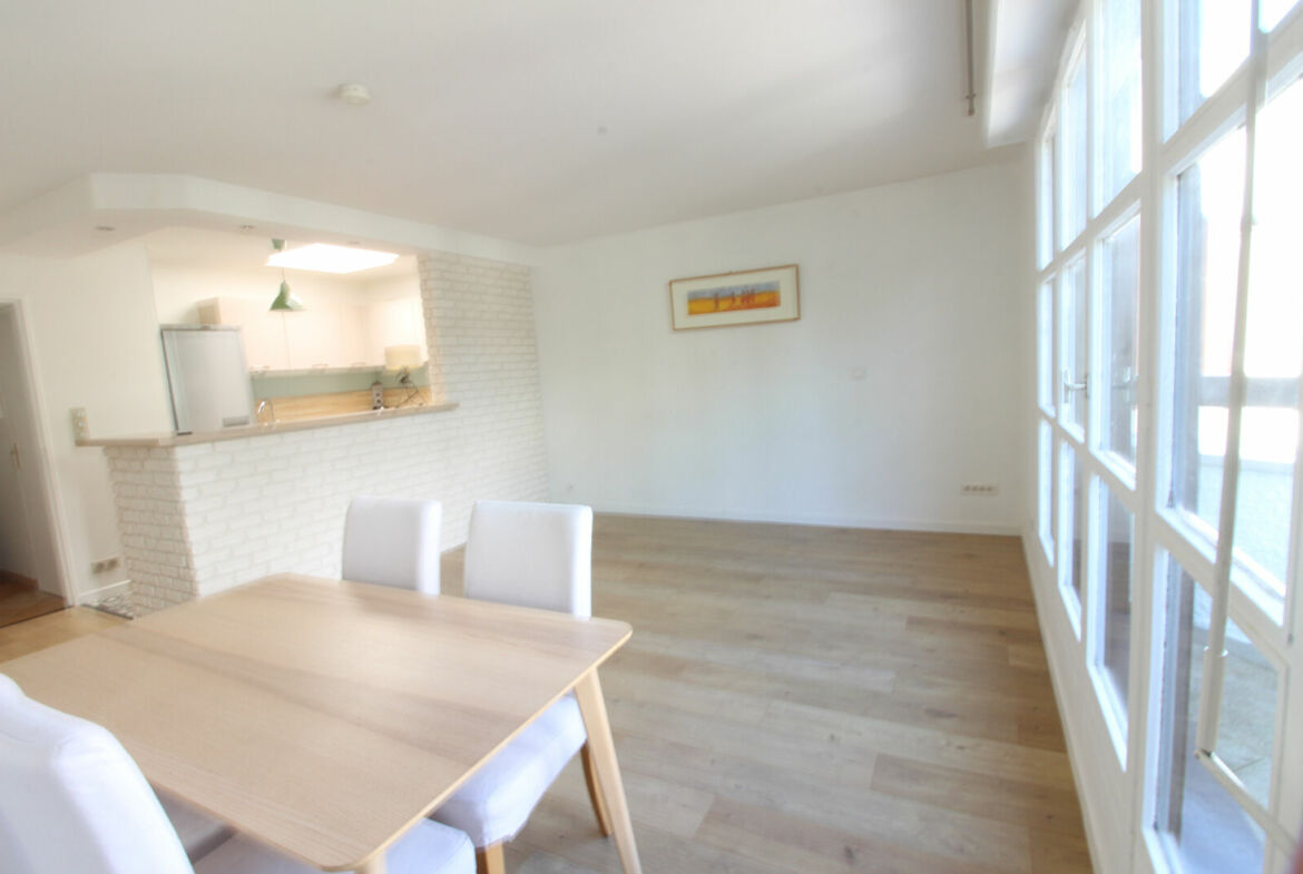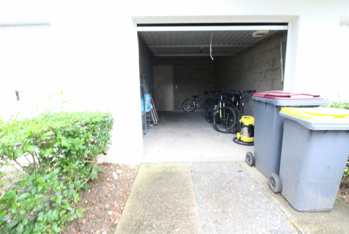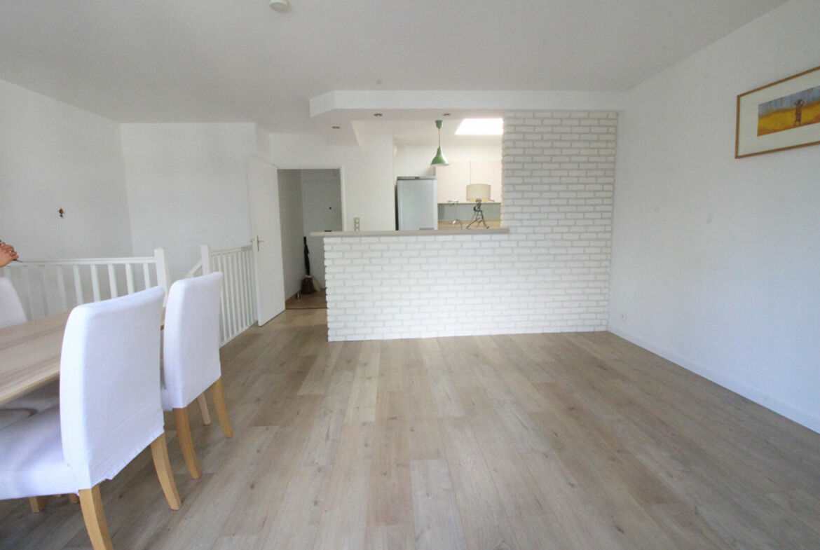 Appartement meublé de type F3 en duplex de 64 m² habitables, séjour avec balcon, cuisine équipée et ouverte, 2 chambres, salle de bain, garage et parking extérieur.