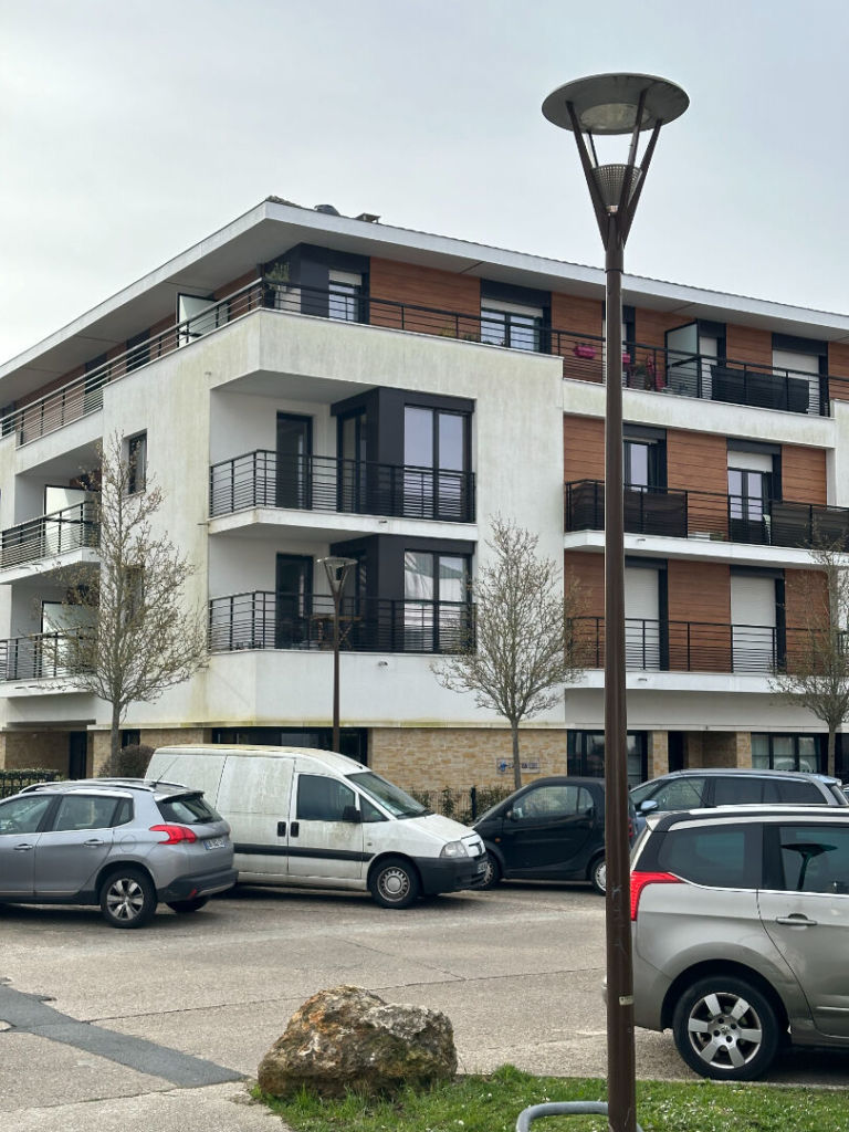 Appartement (résidence de 2014) de type 3 pièces avec ascenseur, 1er étage, 62 m² habitables, séjour (ouest) avec balcon, cuisine aménagée, 2 chambres dont une avec balcon, salle de bains/buanderie, wc séparés, cave et 2 places de parking au sous-sol (boxables). Toutes commodités à pieds