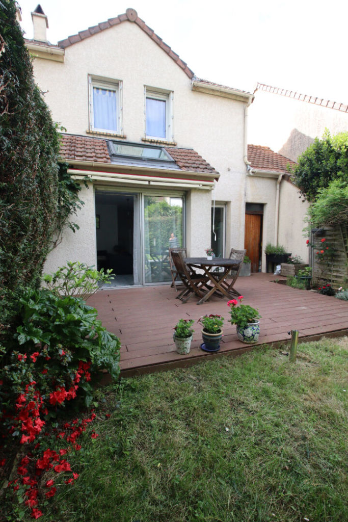 Maison de 5 pièces de type Passy avec combles aménagés, 95 m² habitables, 102 m² utiles, terrain 150 m², entrée, salon, cuisine équipée partiellement, salon avec cheminée, wc avec lavabo, buanderie et garage.