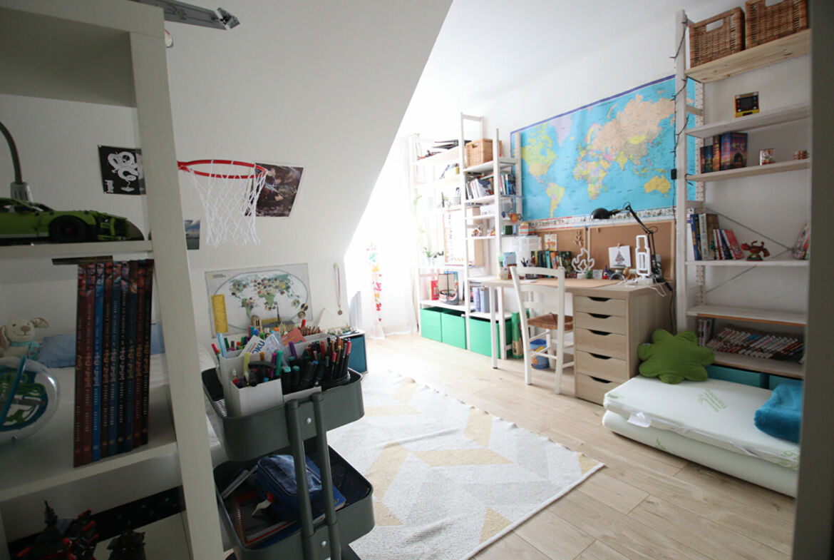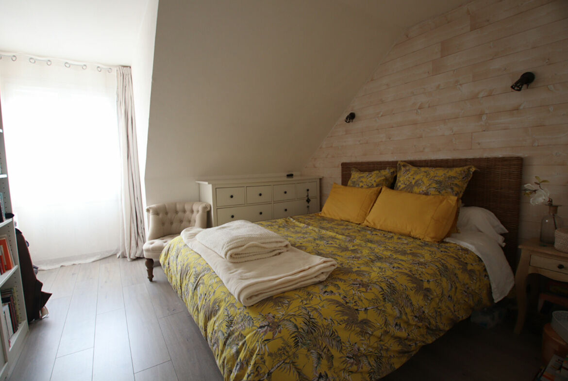 Maison de 7 pièces de type Mogador, 129 m² habitables, terrain 243 m², entrée, séjour avec poêle, coin repas, cuisine équipée, chambre avec douche et lavabo, wc, buanderie et garage double. A l’étage : mezzanine, 3 chambres dont une suite parentale avec salle de bain, salle de bain et wc. Combles aménageables.