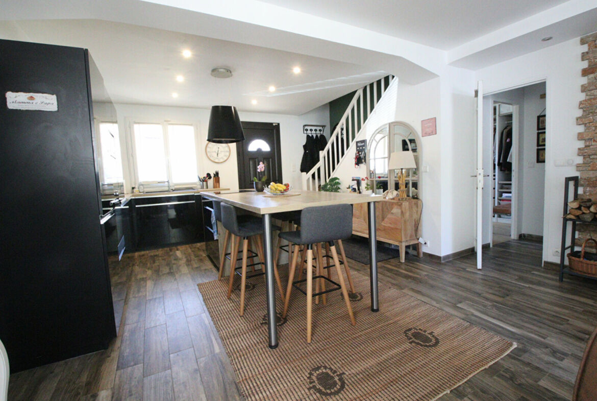 Maison de type Essart de 6 pièces , 107 m2 habitables, terrain 506 m², comprenant : entrée, salon avec poêle (exposition sud/est), cuisine ouverte équipée, buanderie, deux chambres, salle d’eau avec WC, buanderie et garage partiel (deux places à l’extérieur.