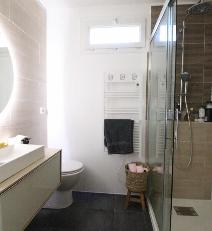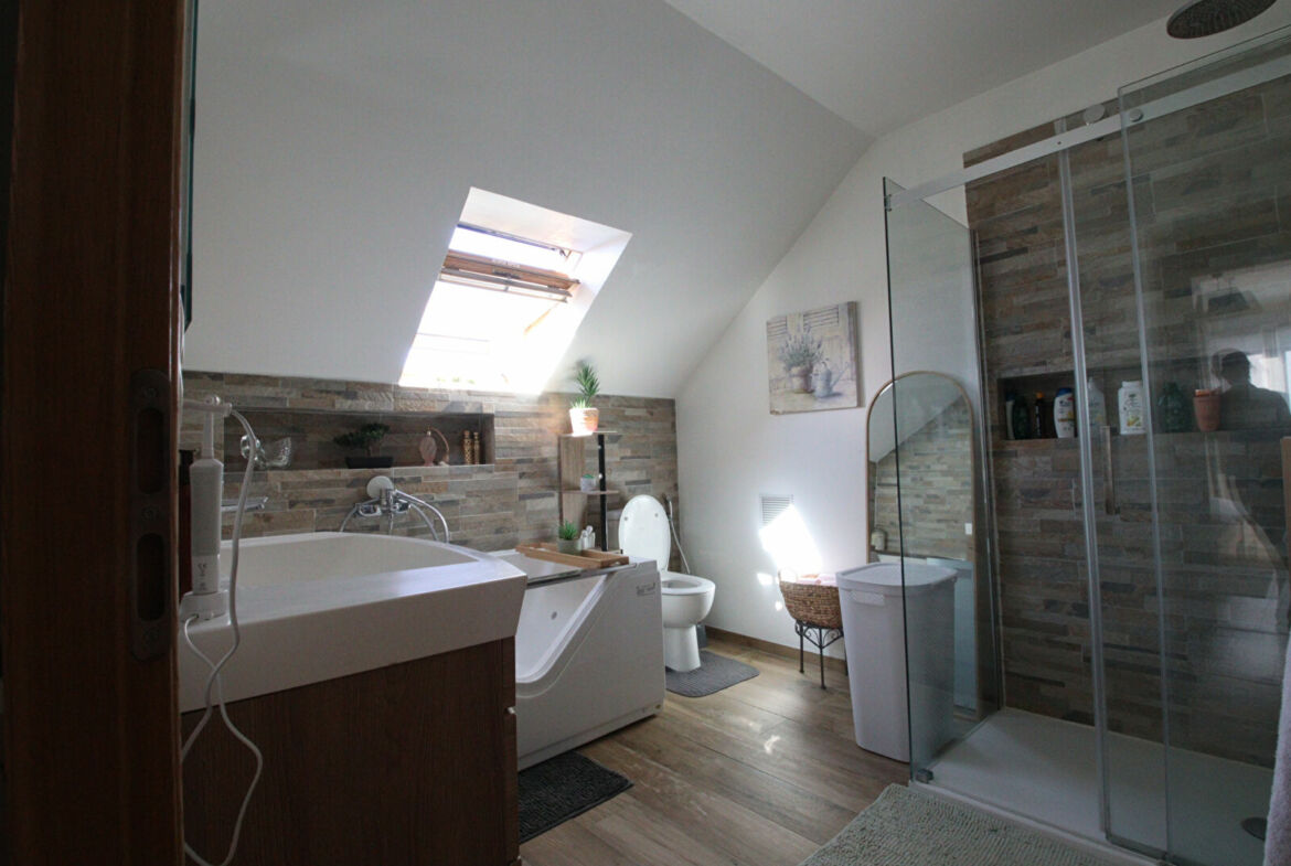 A l’étage : trois chambres, salle d’eau avec baignoire et WC