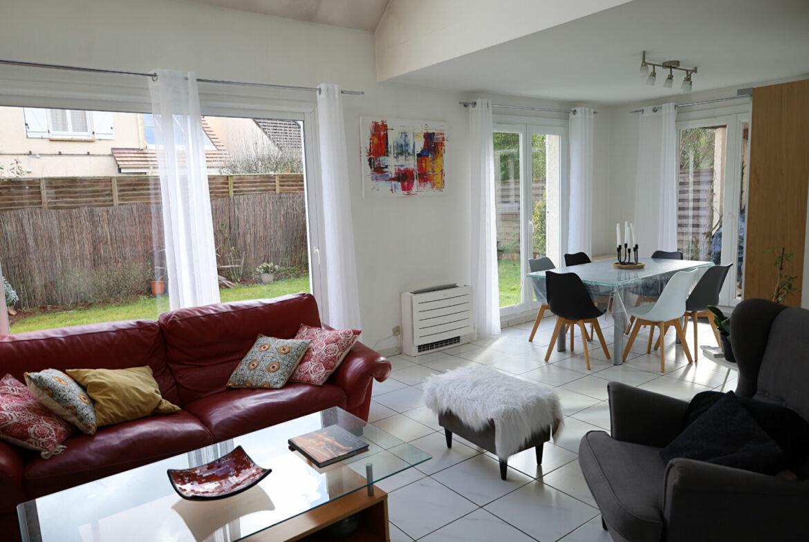 Maison de type Jersey, 6 pièces, 140 m² habitables, terrain 304 m², comprenant : entrée, salon cathédrale avec cheminée insert, coin repas, cuisine équipée séparée, coin repas, chambre, salle d’eau, wc, buanderie/cellier, garage double et 2 places de parking extérieur.