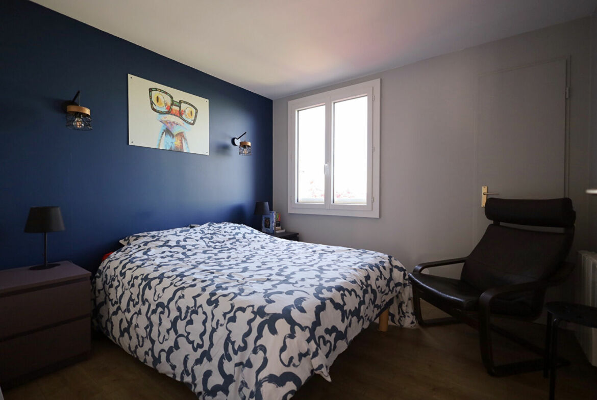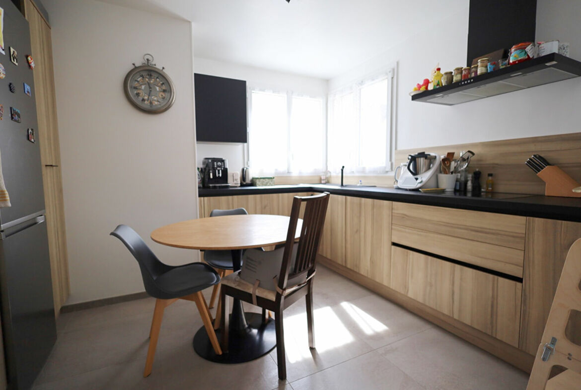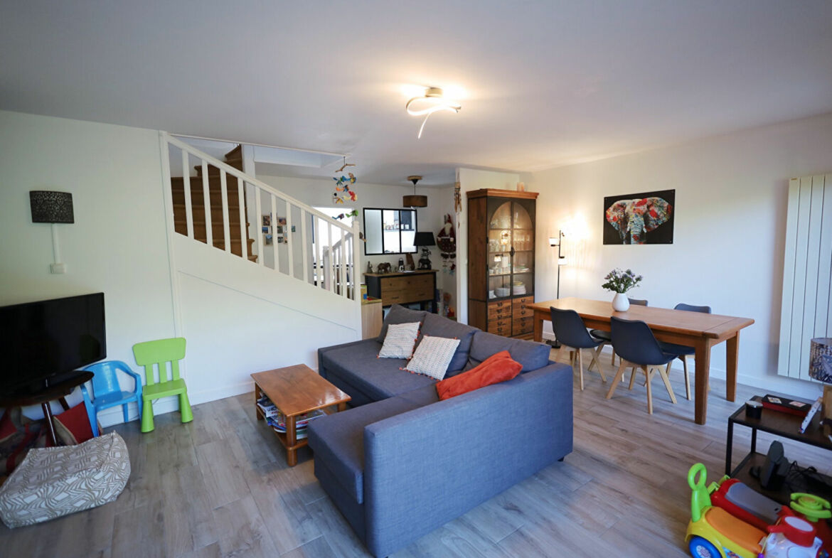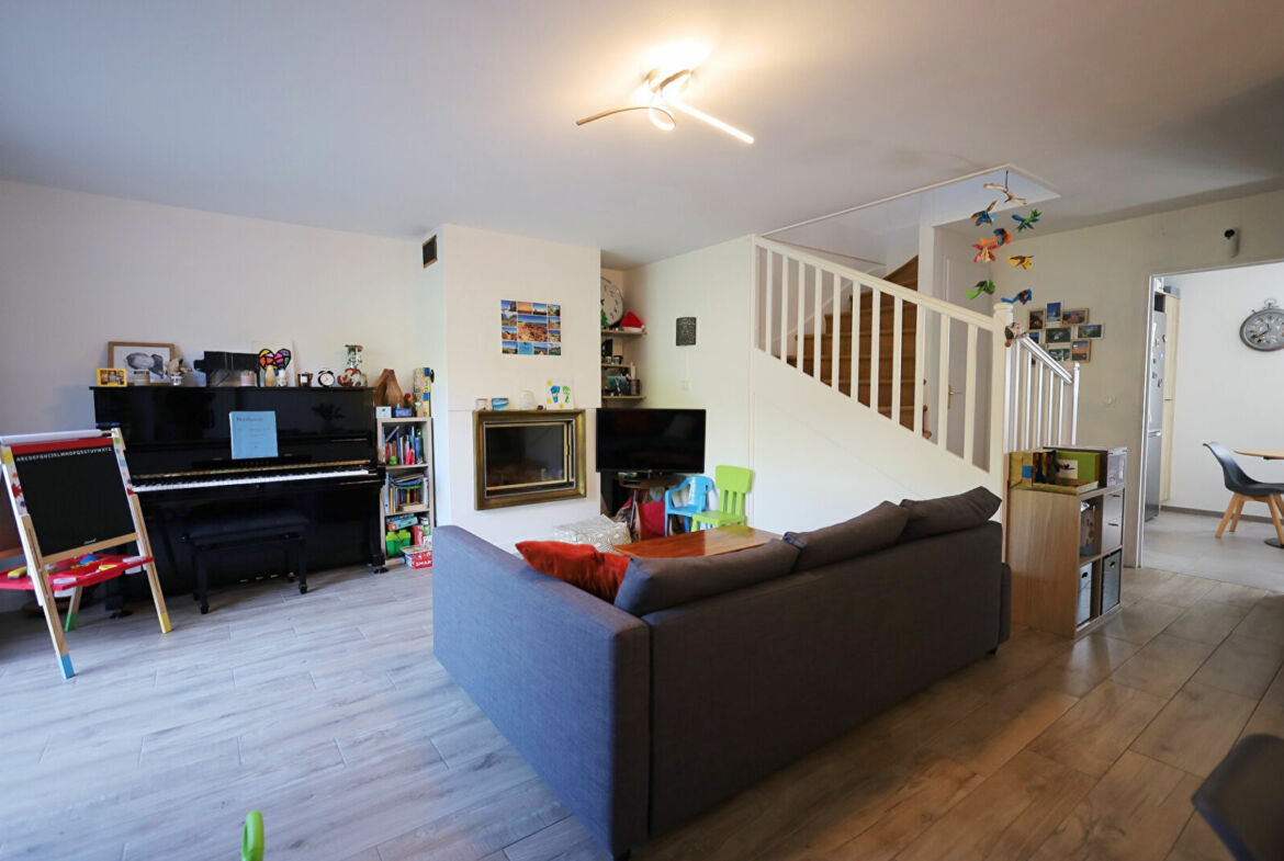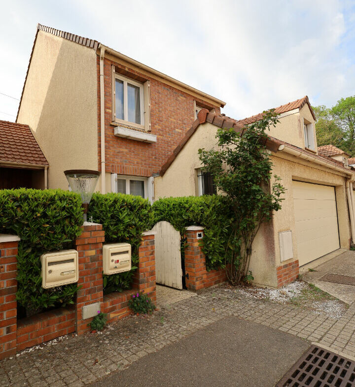 Maison de type Longchamp de 7 pièces en bon état général, 120 m² hab., terrain 180 m², séjour avec cheminée, cusine équipée, wc, cellier/buanderie, abri de jardin et garage double.