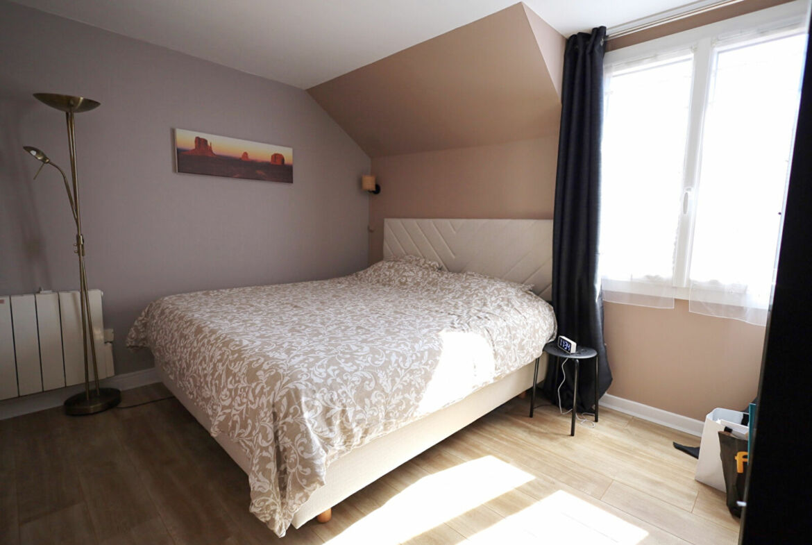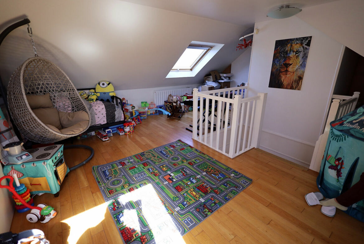 A l’étage : 4 chambres dont une avec salle de bain, salle d’eau et wc séparés. Combles aménagés : une grande pièce (Chambre).