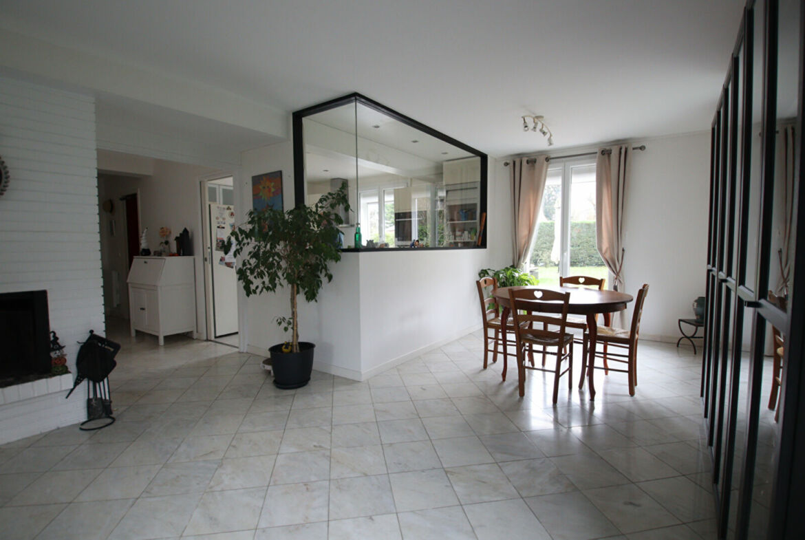 Maison de type Mansart , 6 pièces, 139 m² habitables, terrain 760 m², entrée, salon avec cheminée, coin repas, cuisine équipée, chambre, cellier/buanderie et garage double.