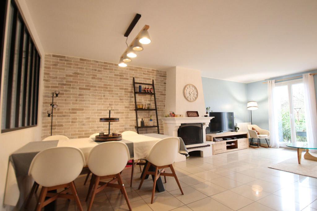 Maison de ville sur sous-sol de 6 pièces, 120 m² habitables, 180 m² de terrain, comprenant: entrée, grand séjour avec cheminée (37m²) donnant sur le jardin, cuisine équipée et indépendante avec verrière, wc séparés. Au premier étage: 4 chambres avec placards intégrés, salle de bains/salle d’eau et wc séparés. Combles aménagés : une chambre et salle d’eau avec wc.