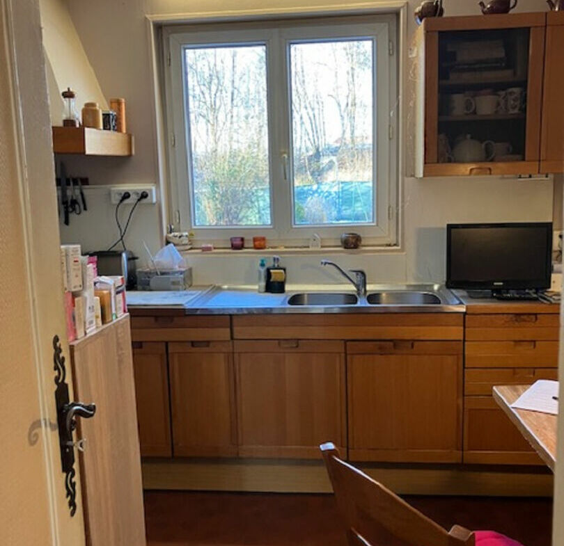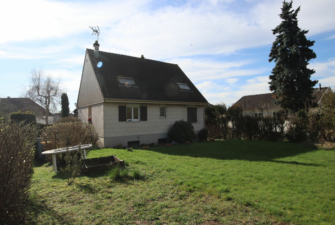 Maison individuelle de 5/6 pièces sur sous-sol total, ossature bois (type canadienne, marque Loiseau) construite en 1973, édifiée sur un terrain de 796 m², 100 m² habitables, 130 m² utiles, comprenant : entrée, séjour avec conduit de cheminée, cuisine, deux chambres, salle d’eau avec wc.