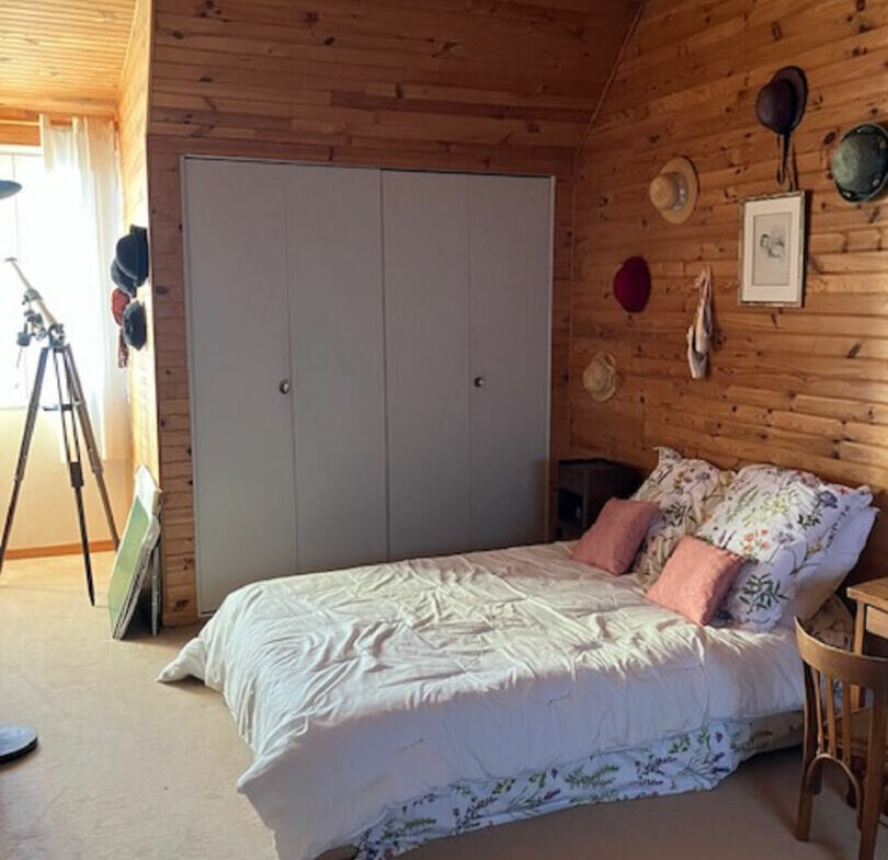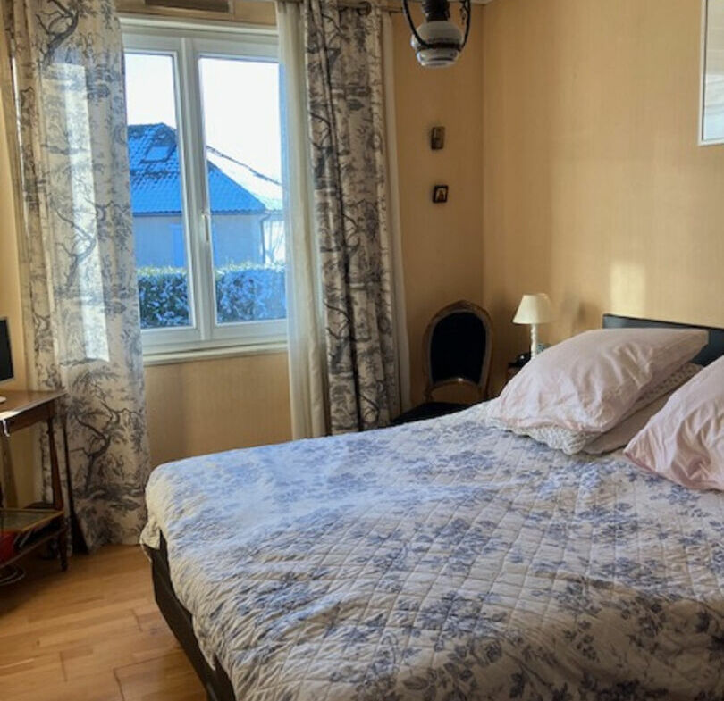 A l’étage : palier, deux chambres, salle d’eau/buanderie.