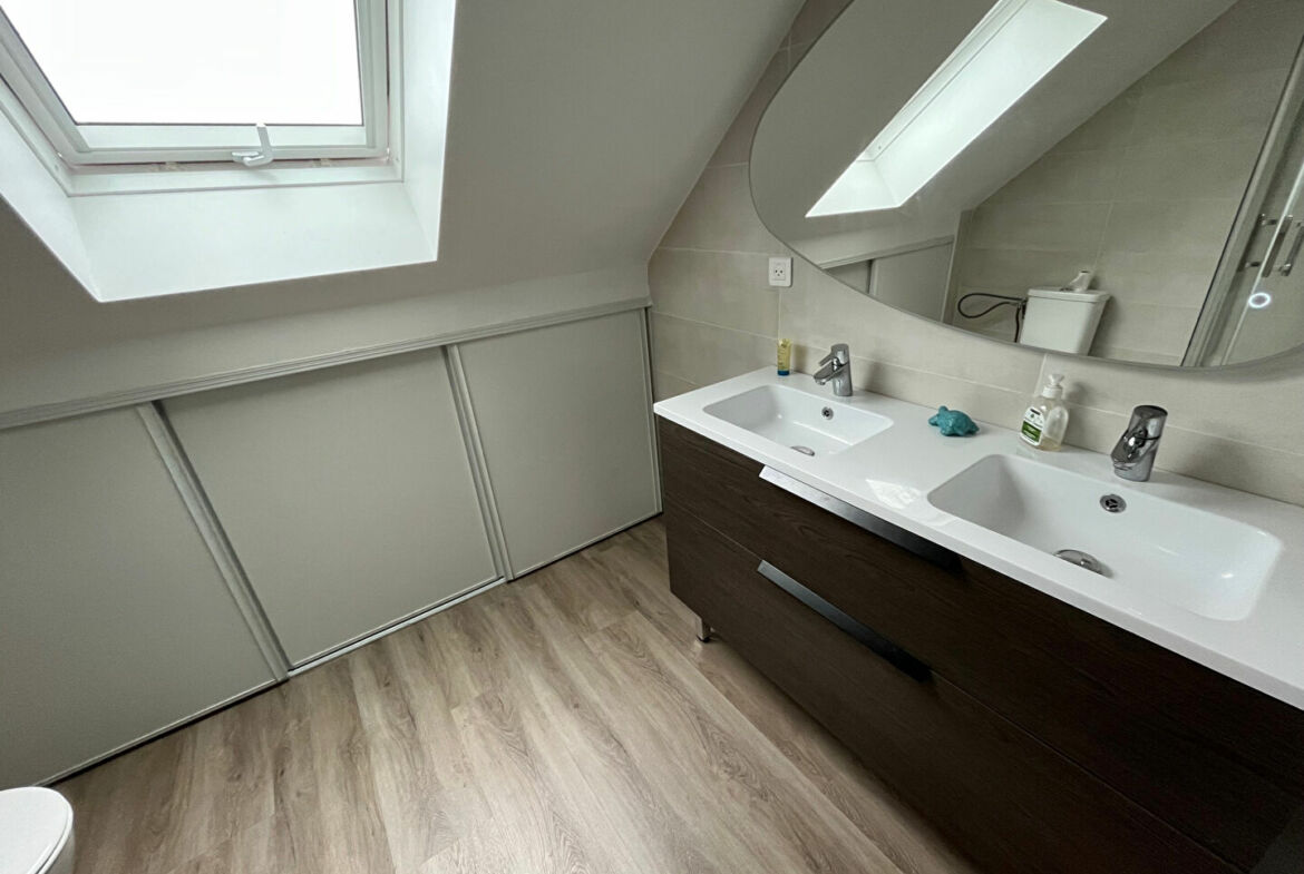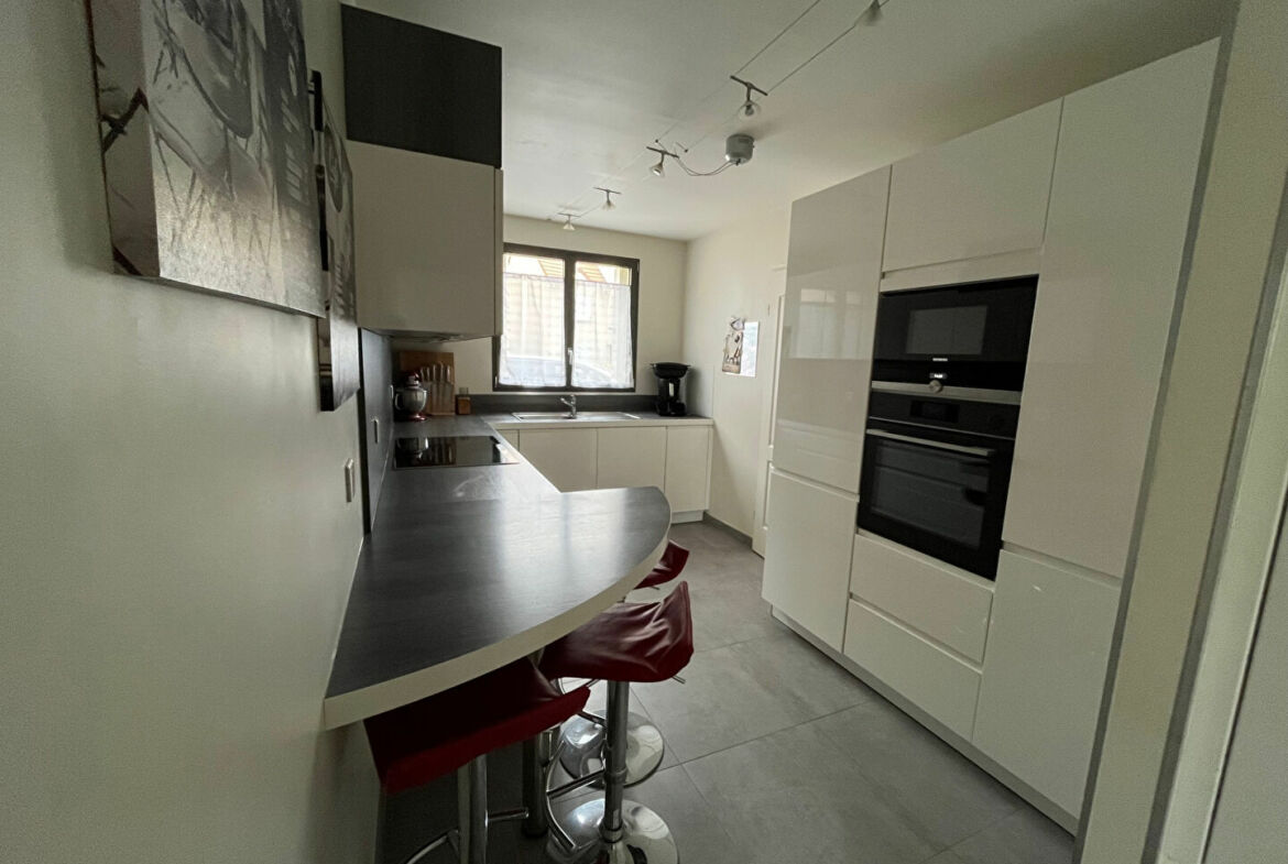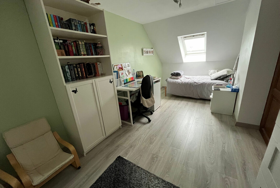 Maison de 7 pièces de type Venise en très bon état général, 130 m² habitables, terrain 252 m², entrée, séjour avec poêle, coin repas, cuisine équipée, wc avec lave mains buanderie et garage. A l’étage : mezzanine, 3 chambres dont une avec salle de bain, salle d’eau et wc séparés. Combles aménagés : deux chambres et salle d’eau avec wc.